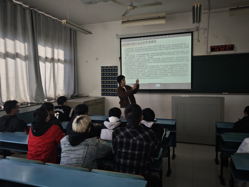 在最后的军事模型展示与交流环节中,社长展示了部分社团成员制作的军事模型,同学们并就模型的历史背景、设计特点、制作心得等进行了深入的探讨与交流。一件件精心制作的模型,不仅是同学们动手能力的体现,更承载了大家对国防事业的关注与对军人的敬意。