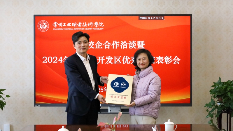 洽谈会期间,还举行了简朴而隆重的表彰仪式。昆山开发区授予常州工业职业技术学院“2024年度昆山开发区优秀院校(潜力发展奖)”,以表彰学院在输送优秀人才、服务地方经济方面展现出的巨大潜力。