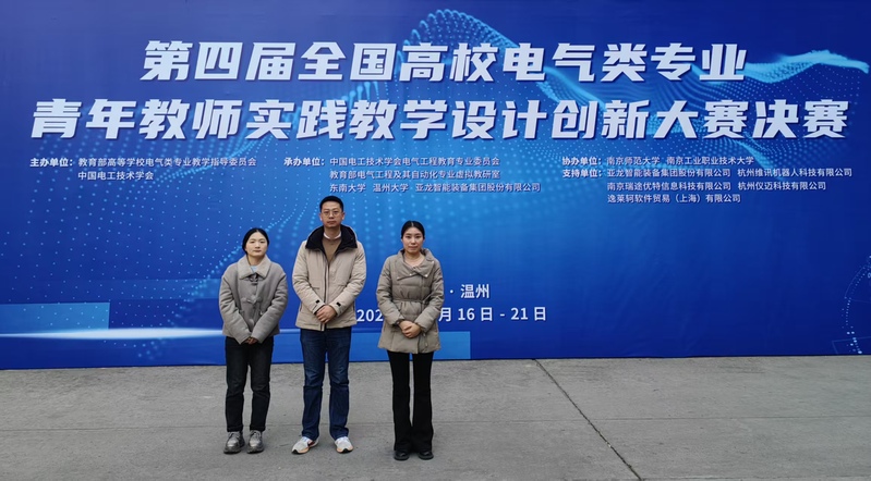 12月18日,第四届全国高校电气类青年教师实践教学设计创新大赛决赛在亚龙集团举行。我校参赛队伍在“电气自动化系统创新设计”赛项中展现出扎实的专业功底与突出的创新能力,由夷文玉、凌松、王可三位教师组成的团队成功斩获全国一等奖。