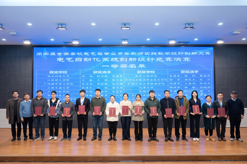 12月18日,第四届全国高校电气类青年教师实践教学设计创新大赛决赛在亚龙集团举行。我校参赛队伍在“电气自动化系统创新设计”赛项中展现出扎实的专业功底与突出的创新能力,由夷文玉、凌松、王可三位教师组成的团队成功斩获全国一等奖。