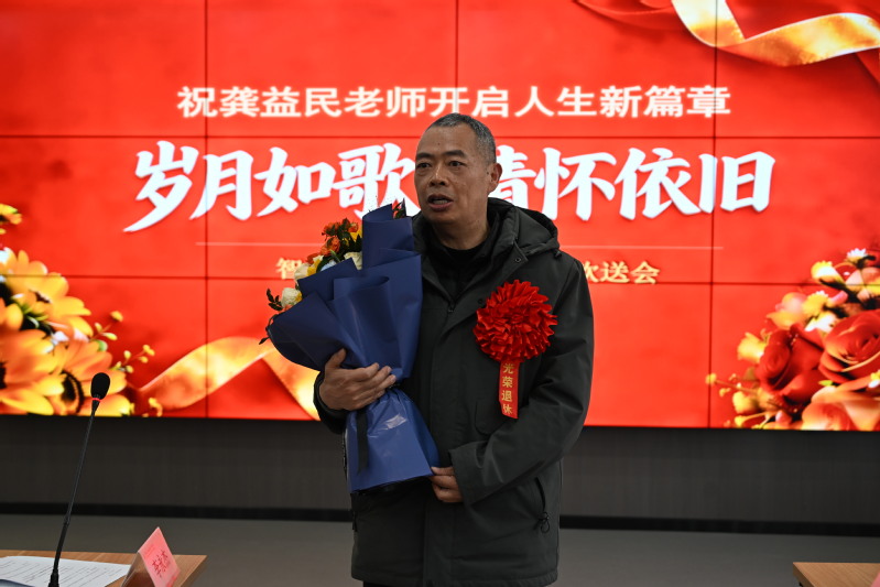 最后,龚益民老师发表荣休感言。他深情回顾了自己在学院数十年的工作历程,感谢学院提供的广阔平台,感恩与各位同事朝夕相处的珍贵时光,言语间满是对教育事业的热爱、对学院发展的牵挂以及对同事们的不舍之情。同时,他也寄语年轻教师,希望大家坚守教育初心,深耕专业领域,为学院的发展添砖加瓦,质朴而真挚的话语让在场众人深受触动。