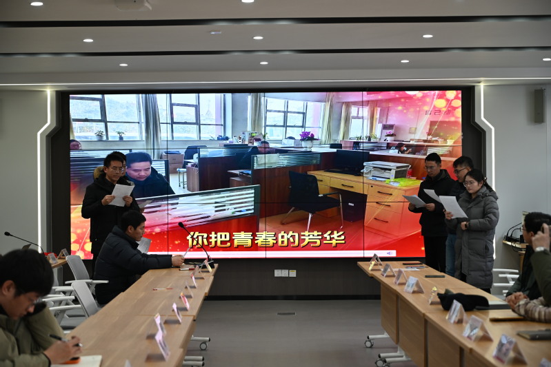 开始时同事代表依次上台分享与龚老师的共事点滴,表达深切感谢与美好祝愿。主持人李永杰老师率先发言,回顾了与龚老师并肩工作的岁月,高度赞扬他数十年如一日的敬业精神。随后,章丽红老师、孙春晖老师先后登台,从不同角度讲述了龚老师在教学、科研及团队建设中的无私付出,回忆了诸多温暖往事,真挚的话语引发全场共鸣。尤为动人的是,李宏哲、杜康、周鹏、凌松、李晓亮、汪梦元 6 位年轻教师代表联袂送上诗朗诵《致荣休的你》,以深情的朗诵致敬龚老师的坚守与奉献,字里行间满是后辈对前辈的敬仰与传承之志。