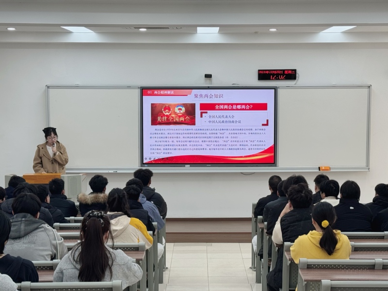 孟老师以“学习两会精神,勇担青春使命”为主题,围绕今年两会的重要成果,结合高质量发展、科技创新、民生保障等热点议题,系统解读了国家发展的新蓝图。她指出,两会不仅明确了国家前行的方向,也对青年一代寄予厚望。在“两个一百年”奋斗目标历史交汇的关键节点,青年学子特别是入党积极分子要自觉从国家发展大局中汲取奋进力量,在学思践悟中坚定理想信念,在时代召唤中勇担青春使命。