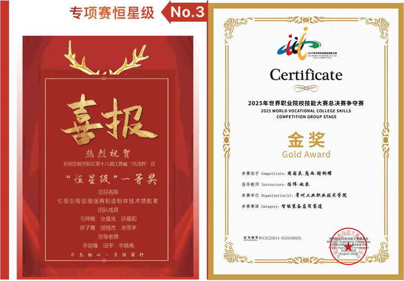 学生积极参加各类技能技术比赛,获得2025年世界职业院校技能大赛总决赛争夺赛智能装备应用赛道国赛金奖、江苏省“挑战杯”大学生课外学术科技作品“恒星级”一等奖、江苏省职业院校技能大赛“新型电力系统技术与应用”一等奖、江苏省职业院校技能大赛“生产单元数字化改造”二等奖等。