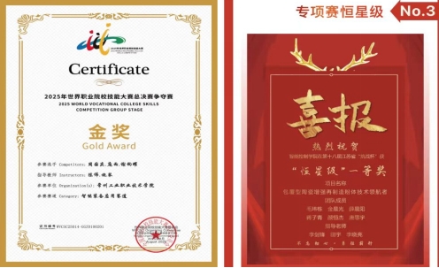 学生积极参加各类技能技术比赛,获得2025年世界职业院校技能大赛总决赛争夺赛智能装备应用赛道国赛金奖、江苏省“挑战杯”大学生课外学术科技作品“恒星级”一等奖、江苏省职业院校技能大赛“新型电力系统技术与应用”一等奖、江苏省职业院校技能大赛“生产单元数字化改造”二等奖等。
