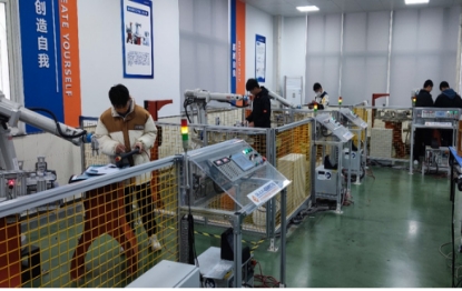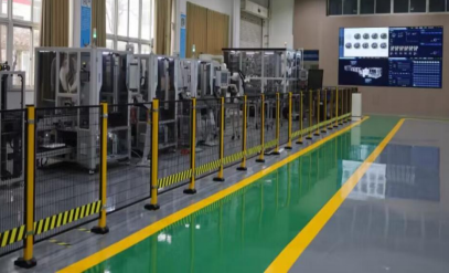 2、校内新能源智能产线(集智能化控制、自动化生产和数字化管理于一体的现代化制造系统产线,深度融合工业机器人、机器视觉、智能传感与MES系统,通过对设备互联与数据实时分析,实现生产过程的精准调度、质量全程追溯与能效优化管理,可显著提升产能与产品一致性,为新能源产业高效、柔性、绿色制造提供关键技术支撑)